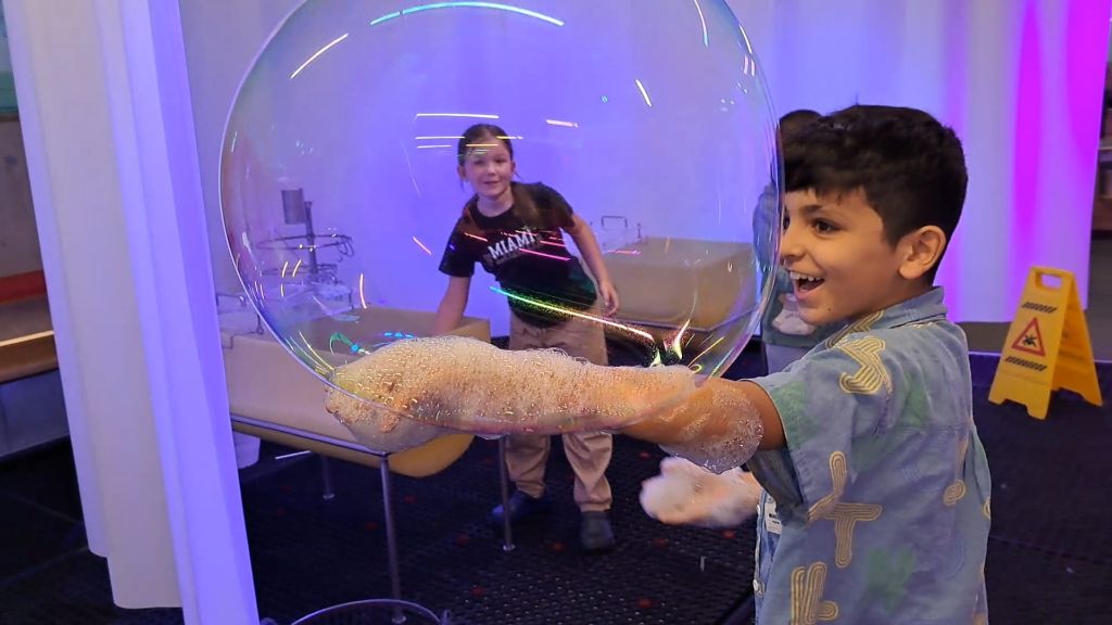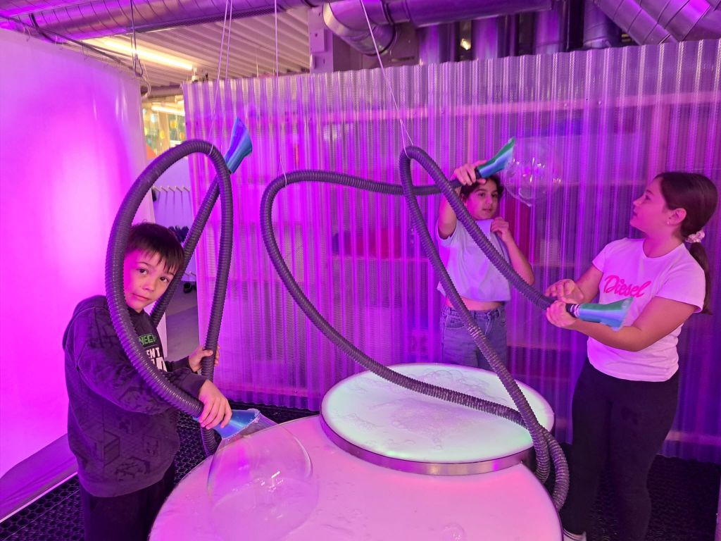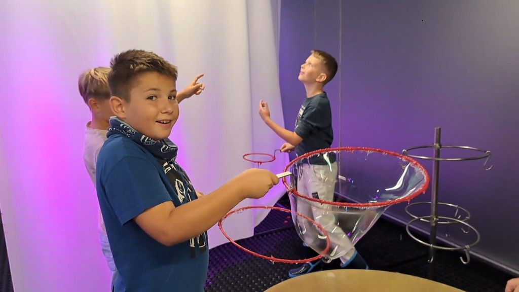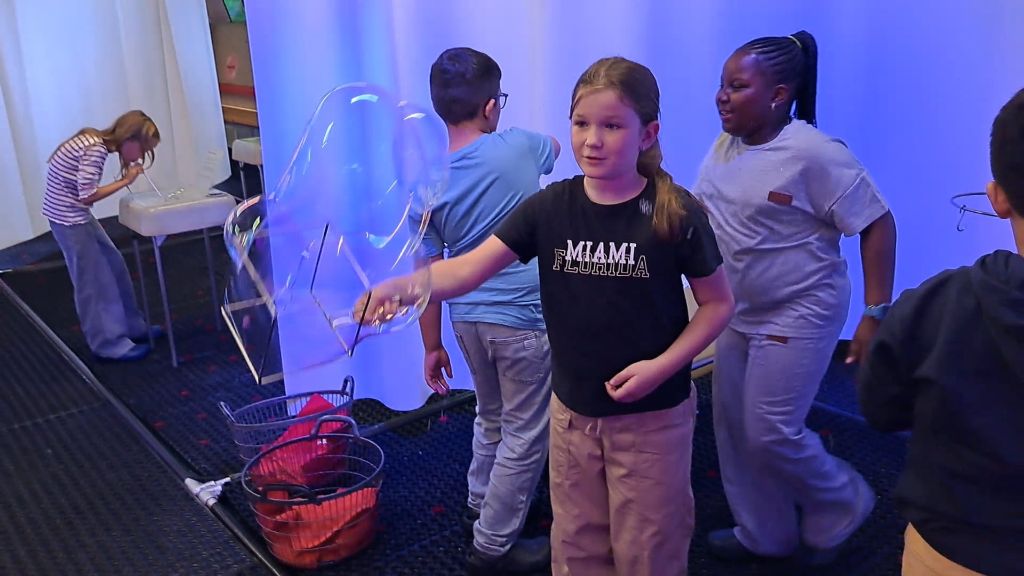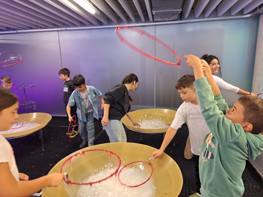 Die 4b Klasse tauchte gleich am Schulanfang in die Welt der Seifenblasen ein und hatte dabei großen Spaß.